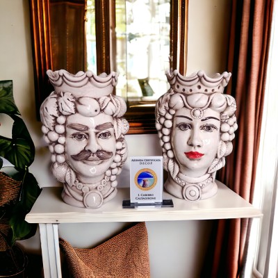 Carrello Togliere dal Wishlist Lista dei desideri Quick view Coppia teste di moro bianco candido h.35 in Ceramica di Caltagirone 110,00 €
