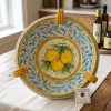 Particolare centrotavola (diametro 40 circa) con decoro del '600 e limoni centrali, in ceramica di Caltagirone.