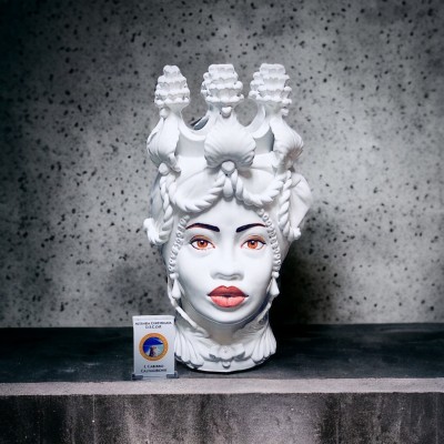 Decorate in bianco candido con bellissime applicazioni in oro, in Ceramica di Caltagirone di altissima qualità. Questa Maiolica di alto valore artistico è stata realizzata da noi con tanta cura e attenzione nel nostro laboratorio artigianale a Caltagirone in via Roma, 34.