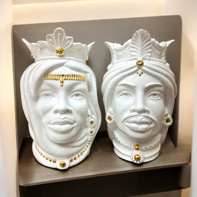 Coppia teste di moro bianco candido H.19 in ceramica di Caltagirone. è presente nelle categorie: