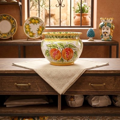 Una raffinata espressione dell'artigianato siciliano che trasforma ogni angolo della casa in uno spazio di puro prestigio. Questo pezzo da 20cm è il frutto di una minuziosa lavorazione manuale nel nostro laboratorio, dove la sapienza della formatura si fonde con una tavolozza di colori senza tempo.
